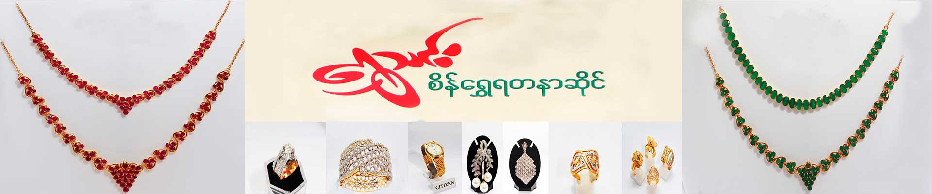 Shwe Thinn Goldsmith & Jewellery was founded in 2011 by U Myo Naing & Daw San San Oo after working in the industry for 35 years. The shop is located at No.99/101 Lanmadaw Road, Lanmadaw Township and we offer a variety of Gold, Diamond & assortment of gemstones and Platinum jewellerise.