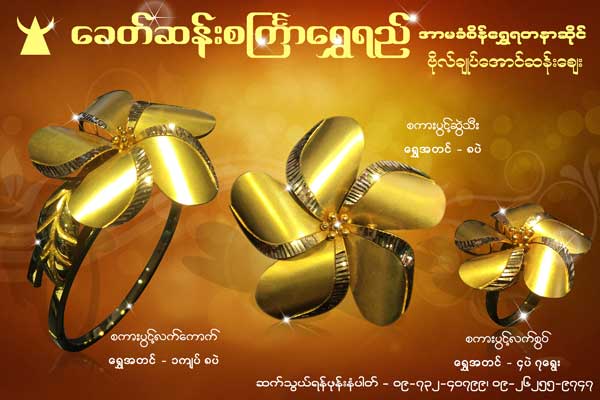 Khit San Sakyar Shwe Yee is located in No(66,67,68,69), Infront of (D) office inside, Bogyoke Market, Pabedan township, Yangon, Myanmar. Company's main business category is Jewellery Shops.
